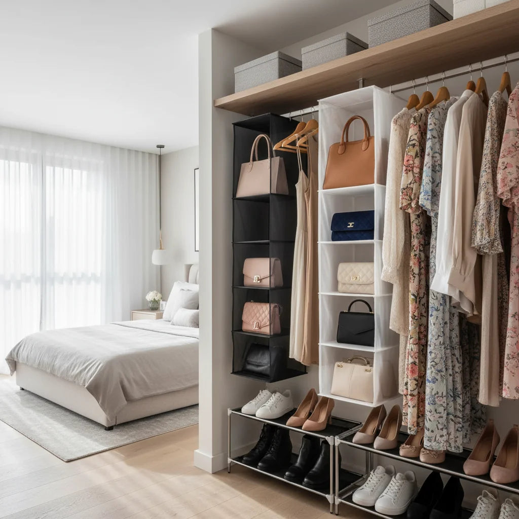 Our Hanging Handbag Organizer is designed to keep your closet neat, stylish, and effortless to use. It protects your bags, saves space, and instantly upgrades your wardrobe organization.